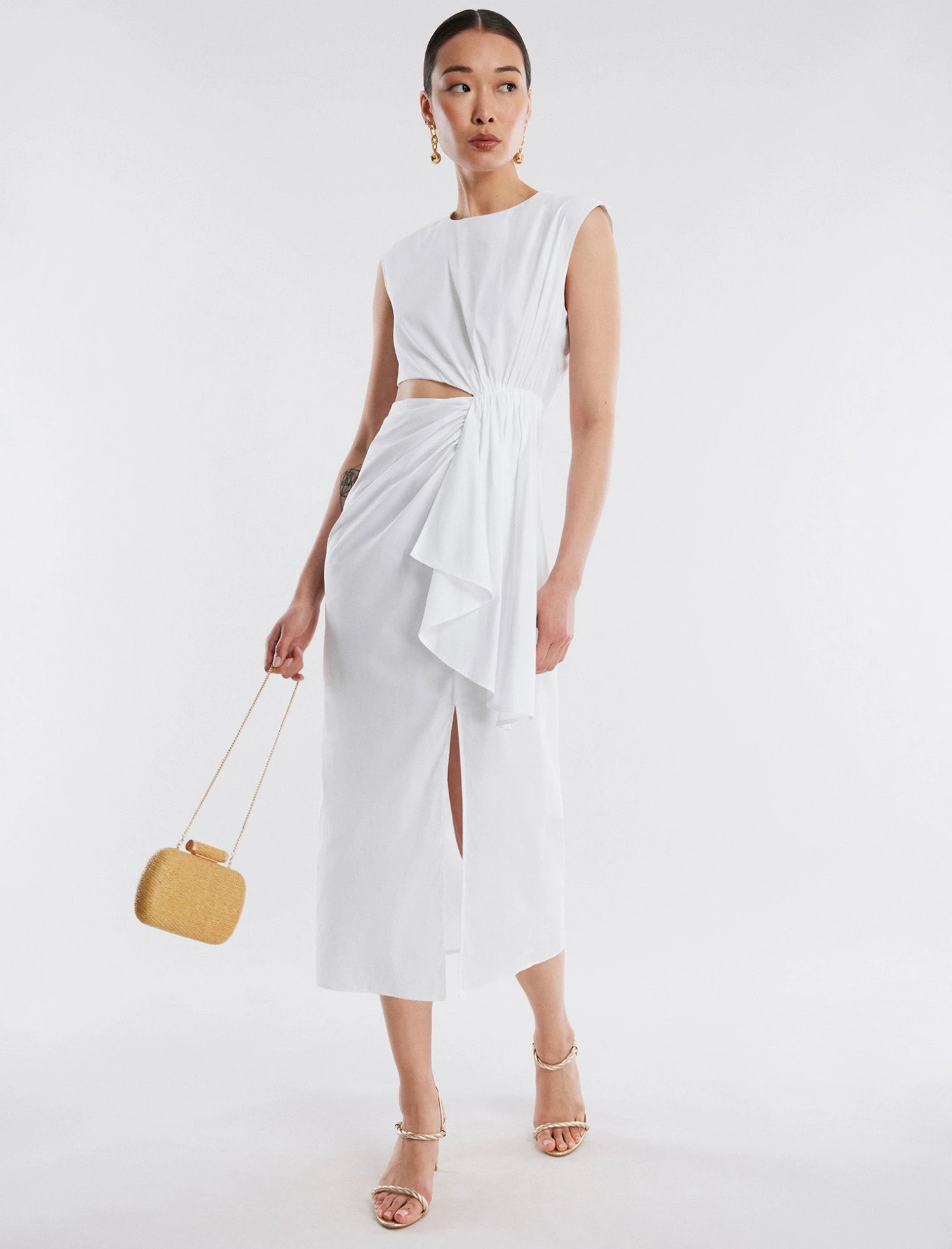 SKU: YMNIZ 7908283875488 Category: Dresses Tags: Color:WHITE, Colorgroup-White, Delivery:4.30.23, Detail-Asymmetrical, Detail-Cut-Outs, Detail-Tie Detail, EndofSeasonSale, Feminine Details, Launch Date: [], Length-Midi, Neckline-Crew, New to sale, Occasion-Bridal, Occasion-Daytime, Occasion-Daytime Party, Occasion-Vacation, Pricetype-Markdown, Promo, RakutenRewards, Season:summer, Sleeve-Sleeveless, Smart_tag-Clothing, Smart_tag-Clothing Less Swim and Intimates, Smart_tag-Clothing Less Swim Intimates and Denim, Smart_tag-MDandOutlet, Smart_tag-Not Birthday Shop, Smart_tag-Not Gift Card, Smart_tag-Not Last Look, Smart_tag-Not New Arrival, Smart_tag-Not Outlet, Smart_tag-Not tips-donation, Smart_tag-Sale Excluding Last Look, Smart_tag-ShopAllLessExclusions, Smart_tag-WeddingEdit, Style:Kira Poplin Midi Dress, Summer, Summer23, US Sizing, YBlocklist