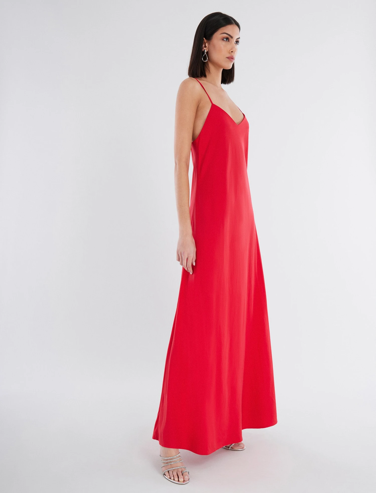 Wear-anywhere maxi dress cut from a lightweight linen blend. Topped with a sweetheart neck and spaghetti straps. Complete in a flattering A-line silhouette.